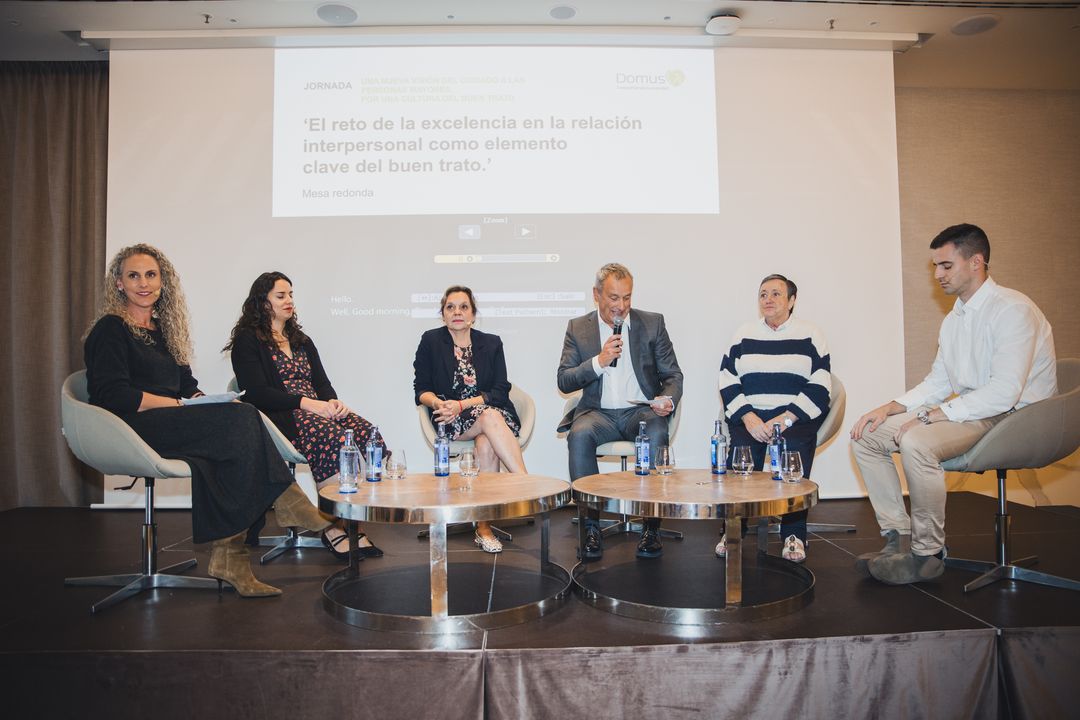El objetivo de la jornada ha sido generar un espacio de encuentro y debate donde se abordó un reto tan importante como es la transformación de la cultura de cuidados hacia un modelo más humano. Para ello han participado expertos como la Profesora Gema Rojo, catedrática de CEU San Pablo y codirectora de la Cátedra del Buen Trato, y Rocío Alonso, directora de Humanización de DomusVi, y Sema Pérez, director técnico asistencial de la compañía.