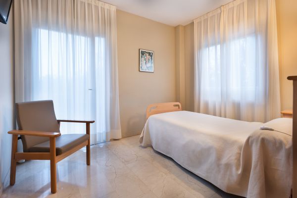 Habitación propia equipada con cama articulable, sistema de aviso y televisión