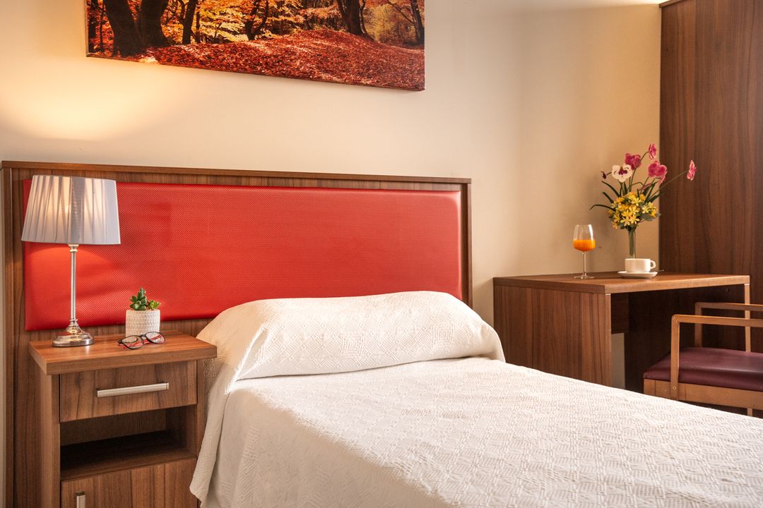 Habitación propia equipada con cama articulable, sistema de aviso y televisión