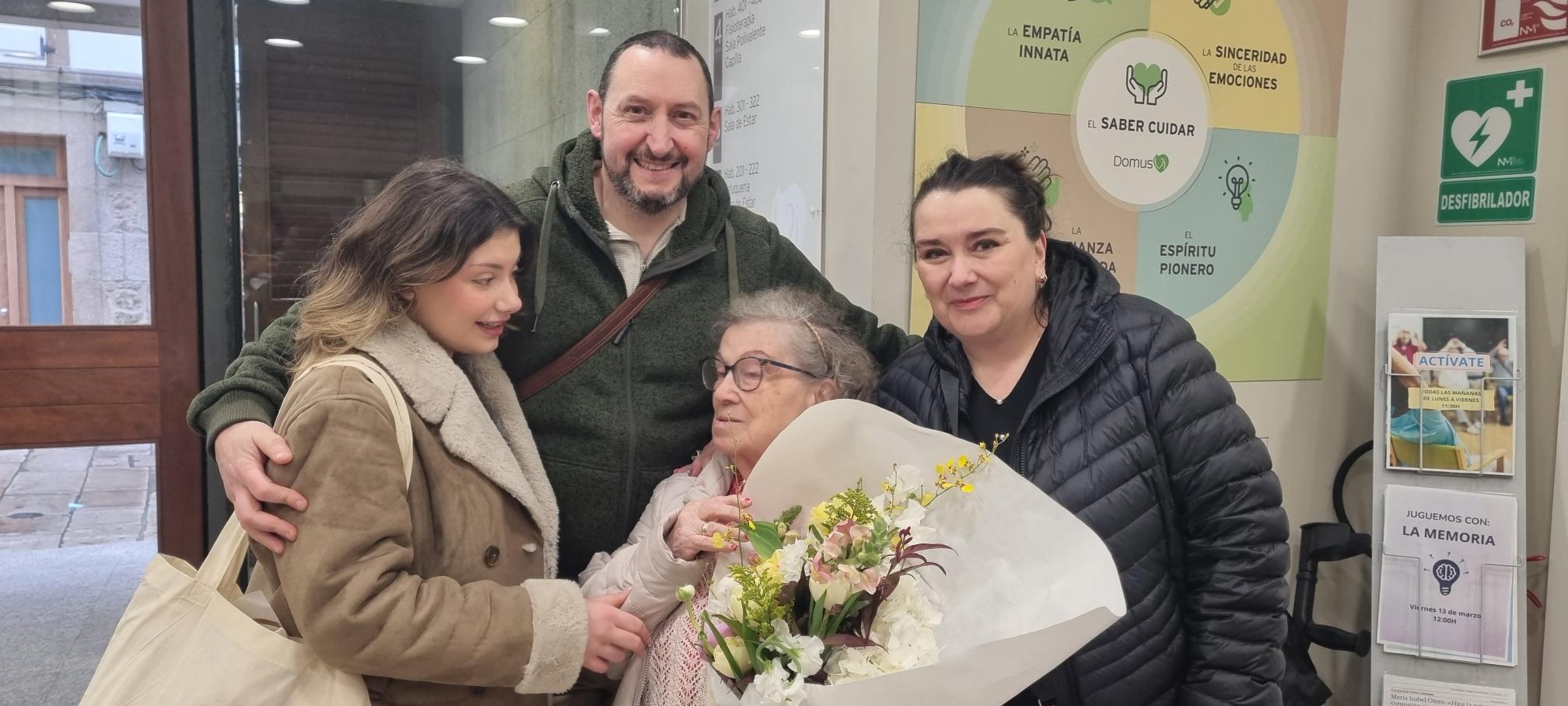 Rosa es una persona muy querida en este hogar por su alegría y bondad. Hoy recibe un ramo por su 92 cumpleaños de parte de su familia que proviene de Londres. Van a disfrutar del día en los triciclos de Afundación todos juntos.