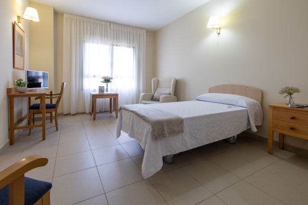 Habitación propia equipada con cama articulable, sistema de aviso y televisión