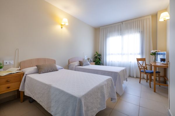 Habitación compartida equipada con camas articulables, sistema de aviso y televisión