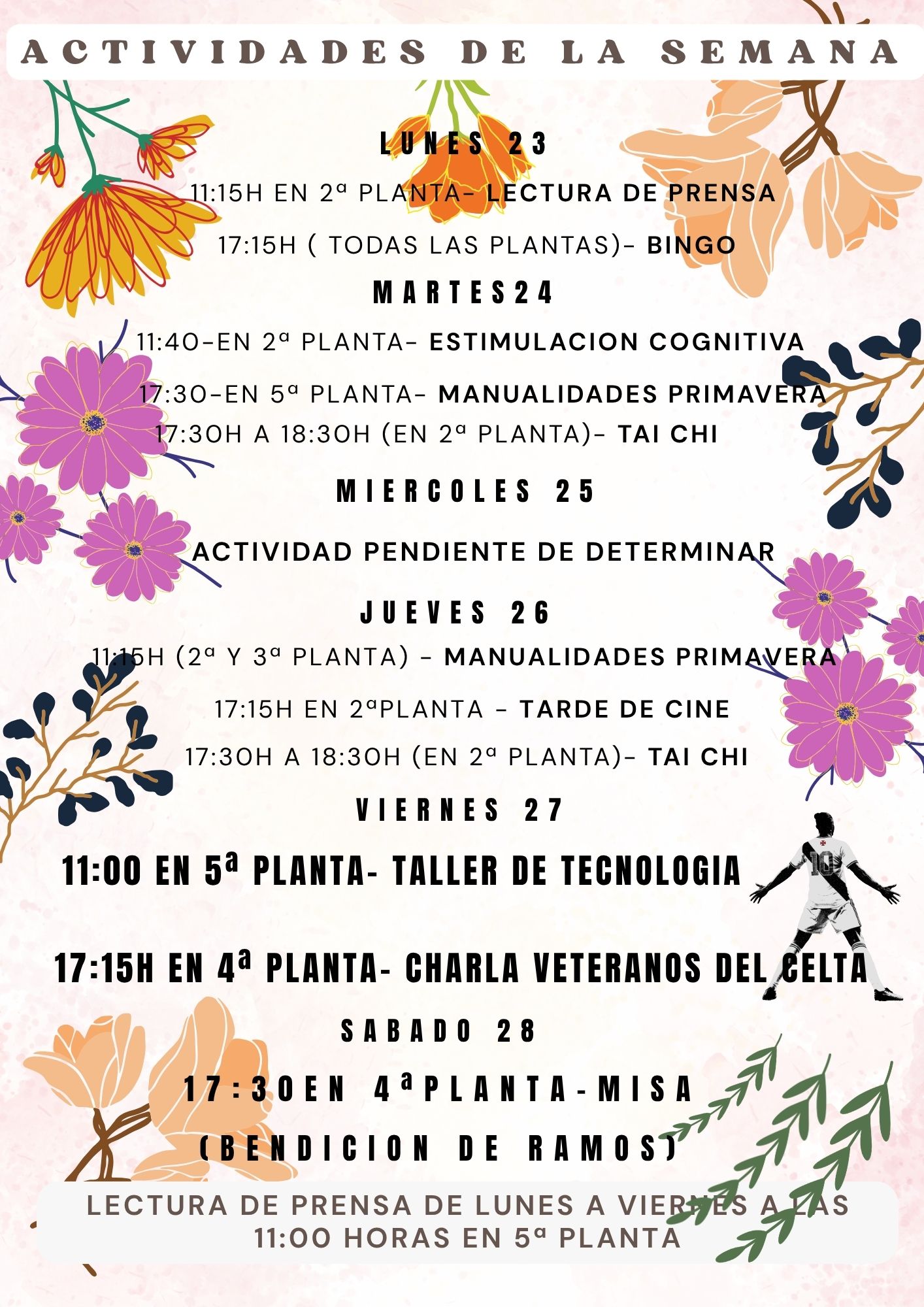 Esta semana tendremos la visita de los veteranos del celta de Vigo. También tendremos el sábado por la tarde la misa de ramos. En ella nuestro cura bendecirá los olivos para que nos protejan todo el año. Os esperamos en ambos acontecimientos!!!
